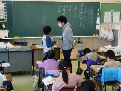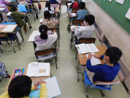 3組の教室に行きました。国語の学習を行っていました。物語「わすれられないおくりもの」を場面ごとに読み込んできたことから、「あなぐまさんへの手紙」を書き、台紙に貼っていました。先生に質問している児童もいました。