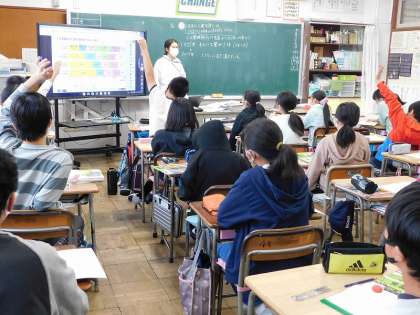 4組は,社会の学習をしていました。「日本の工業生産にはどのような特色があるか。」という学習課題をみんなで考えていました。