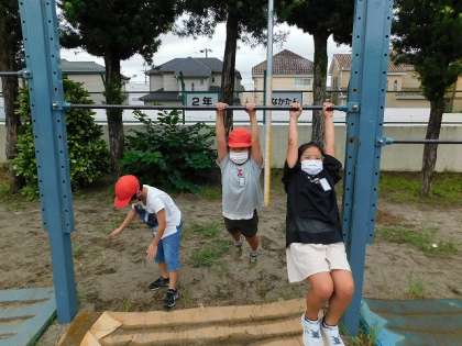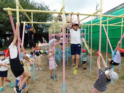 のぼり棒やてつぼうにも、子どもたちがたくさん遊んでいました。