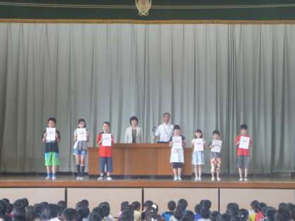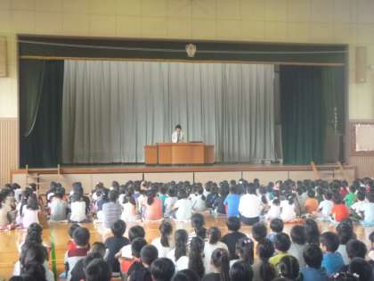 体育館に集まり、1学期の終業式を行いました。