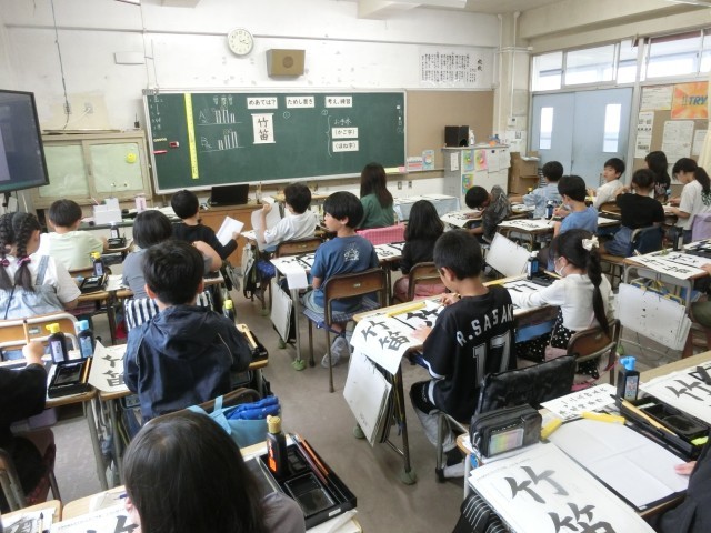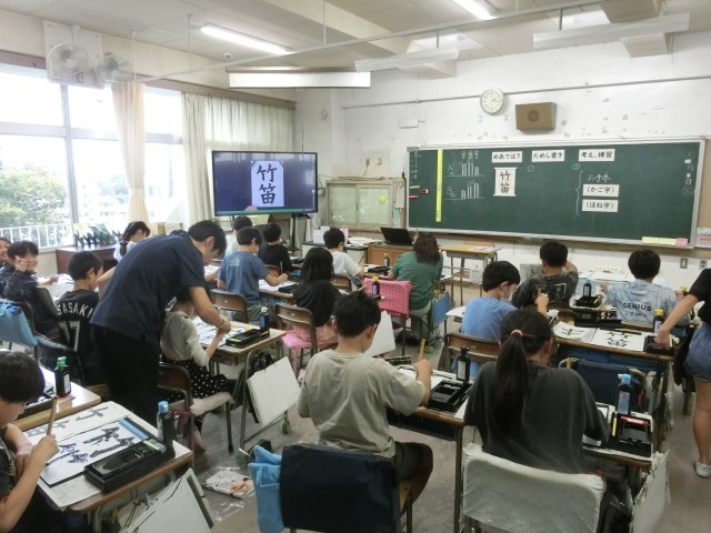 書写では、「竹笛」を書いていました。竹と竹かんむりの違いに気を付けながら、お手本をよく見て書いていました。