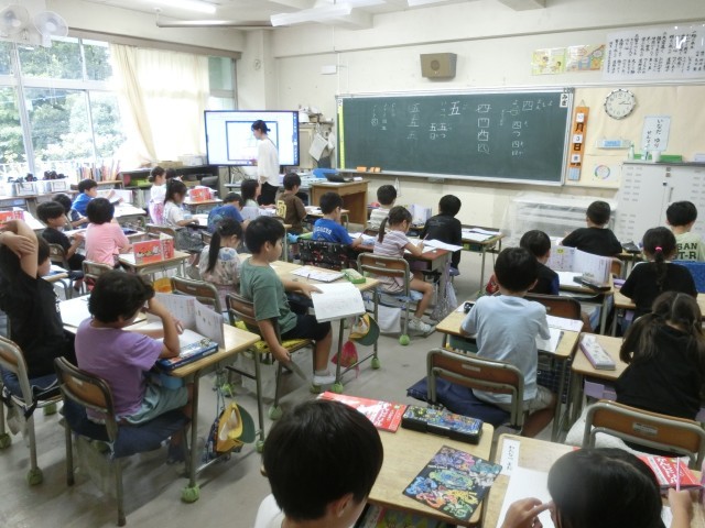 国語では漢字の学習に取り組み、しーんと静まり返る教室でみんな集中してドリルに漢字を書き込んでいました。
