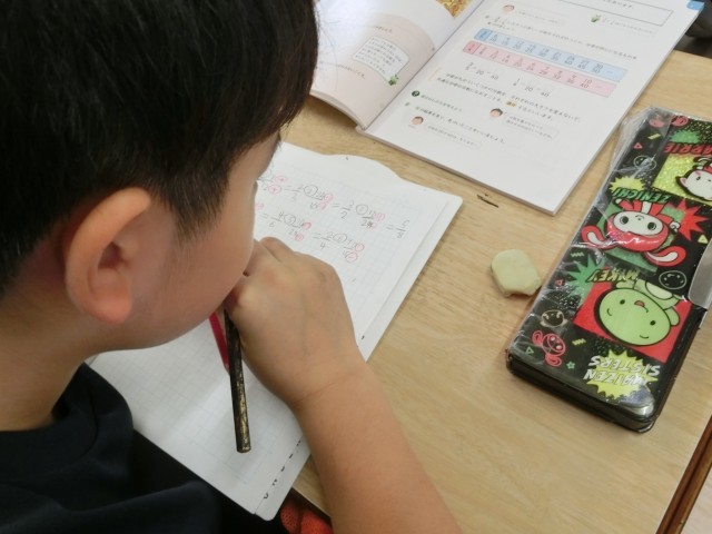 10月17日 5年生 算数 分数の約分、分母が1のときは整数に直すよ。
