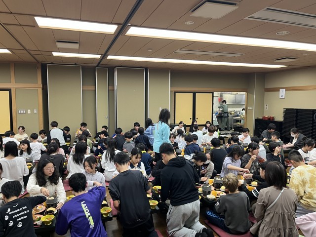 予定通りにホテルに到着し、夕食となりました。豪華な夕食に舌鼓を打つ子供たちです。