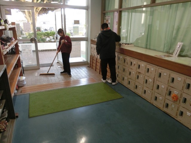 12月8日 掃除 たくさんの方が使用する職員玄関を、いつもきれいにしてくれてありがとう!