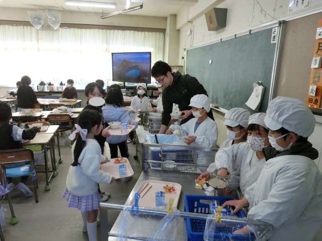 2月3日 給食 1年生の配膳準備、時間通りにできるようになりました。