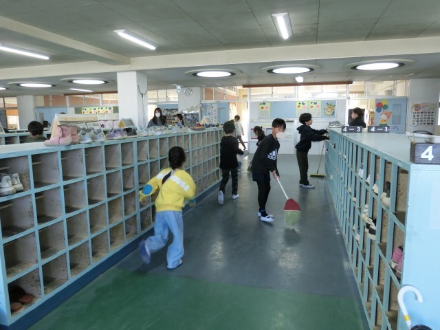 2月4日 そうじ 昇降口担当の上級生、とりかかりが早く、よき見本です。