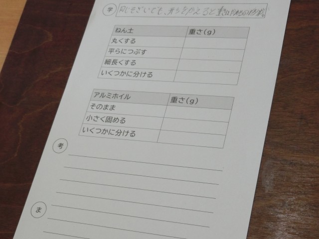 2月17日 3年生 理科:同じ素材でも形を変えると重さは変わる?