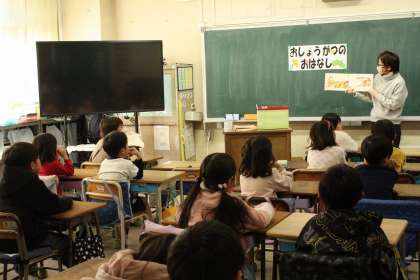 図書館の方々にお越しいただき、干支の話(ブックトーク)をしてもらいました。