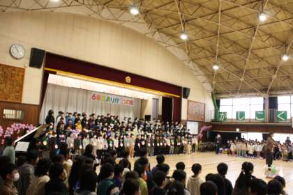 先生方からも歌のプレゼントがありました。 最後の全校合唱も