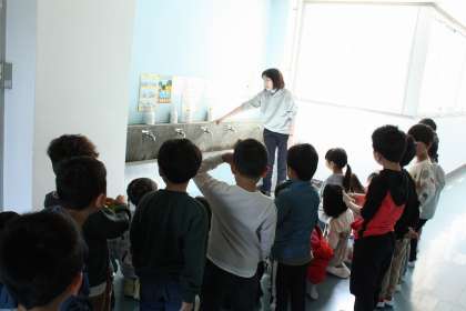 入学式後初日 トイレやロッカー、靴箱、水道などの使い方について学んでいました。