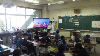 朝の学習の時間に、6年生が読み聞かせをしてくれたり、1年生のためにつくった動画を見せてくれたりしました。