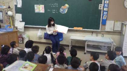 朝の学習の時間に、6年生が読み聞かせをしてくれたり、1年生のためにつくった動画を見せてくれたりしました。