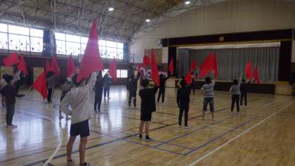 6年生は早くも,運動会に向けて表現運動の練習が始まりました。