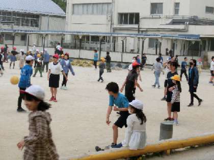 4月18日 昼休み 公開日 2024/04/18 更新日 2024/04/18 お知らせ 全校そろっての昼休み。 1年生の手を引き、優しい笑顔で一緒に遊ぶ、6年生。 ドッジボールや鬼ごっこで汗を流す道っ子。遊び方は様々ですが、みんなとても良い表情で遊んでいます。