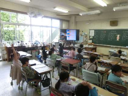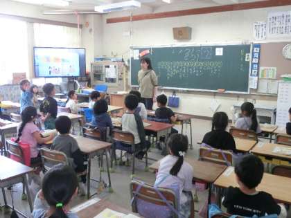 国語では、「う」から始まる言葉をみんなで探しました。 道徳では、教室の中にある「1」「2」「3」を見つけました。
