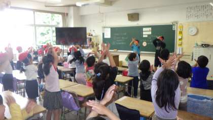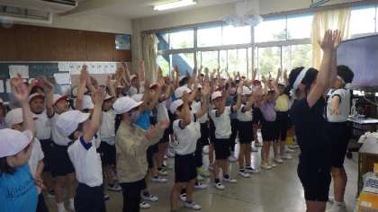 今週末に控えた道っ子大運動会。校内は運動会一色で盛り上がっています。朝学習の時間には応援の声が響きました。