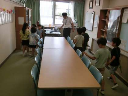 今日も2年生と一緒に校内探検。初めて校長室や職員室にも入りました。
