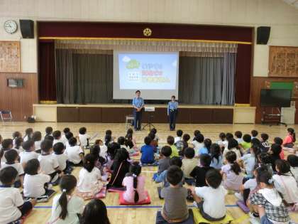 3時間目には、警察の方をお招きして、防犯教室を行いました。DVDを観た後に「いかのおすし」のロールプレイをしました。また、手錠や警棒の実物を見て、大興奮でした。