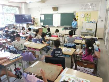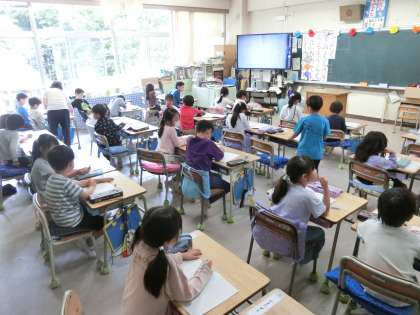 音楽の学習では、今月のうたの「赤い屋根の家」の練習をしました。初めて聞く曲、早く覚えられるといいですね。