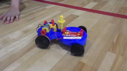 理科では、直列つなぎと並列つなぎの違いを、体育館で実際に車を走らせて確かめました。