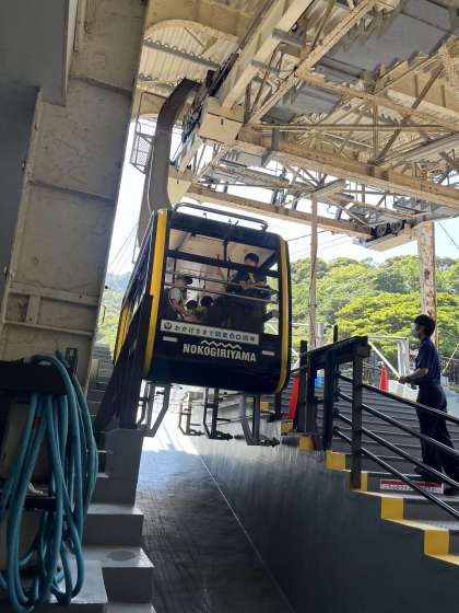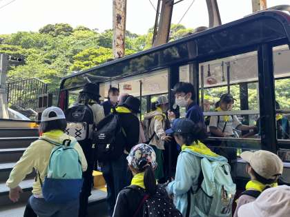 鋸山に到着し、ロープウェーに乗り込みます。 初めて乗る子もおり、大興奮です。