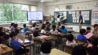 外国語の学習では、I like 〜.を使って、自分の好きな色やスポーツを紹介する練習をしました。