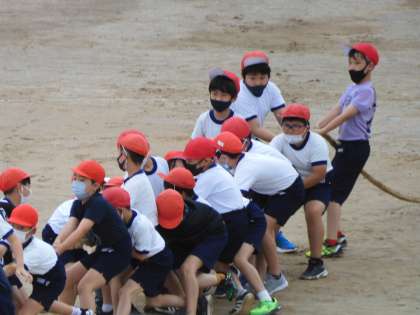 4年生は綱引きの練習中でした!