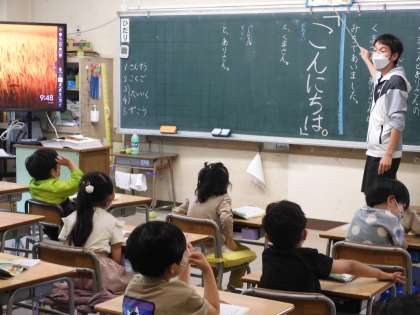 1年生、国語でくまさんとありさんの「こんにちは」を表現していました!