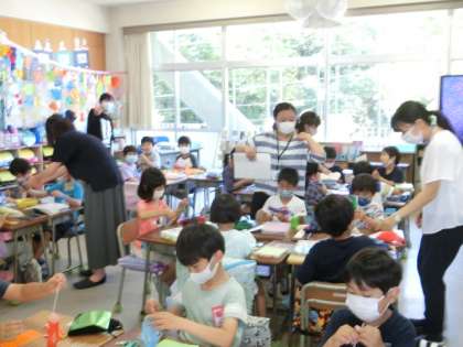 今日は、1年生が七夕の飾り作りをしていました! 上手にできていますね!