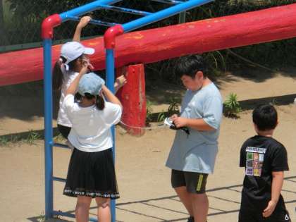 校庭の色々なものの長さをはかっていました!