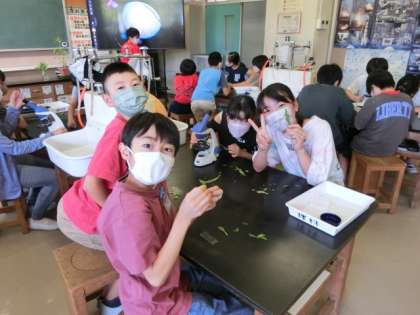 6年生、顕微鏡で植物の葉を観察していました!