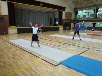 体育館で、マット運動のテスト中でした! ビシッときまっていますね!