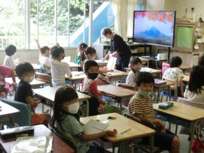 2年生、校長先生をゲストに招き、七夕の学習をしていました!