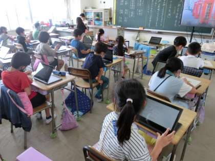 3年生、クロームブックで問題に取り組んでいました!