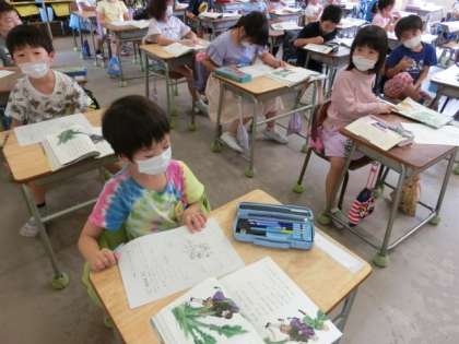 1年生、国語で「大きなかぶ」の学習でした。 かぶはぬけたかな?