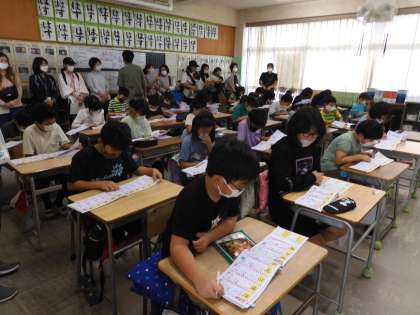 4年生、お家の方も参加して百人一首を楽しんでいました!