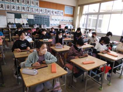 そろばんに興味津々で取り組んでいました!