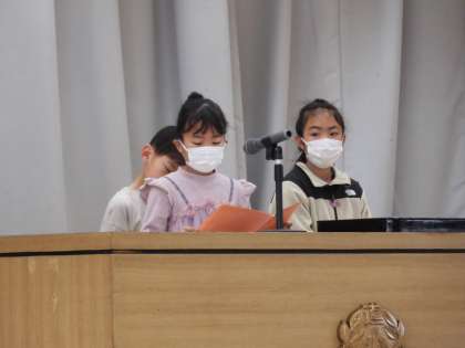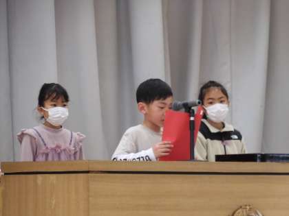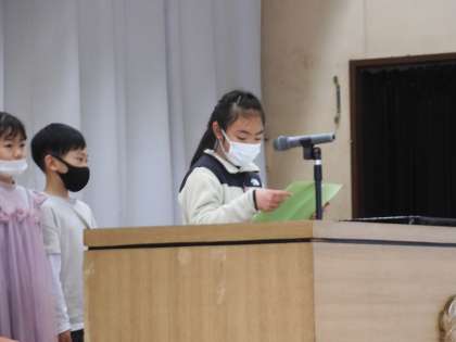 各学年の代表の友だちが、今学期を振り返って作文を読みました!