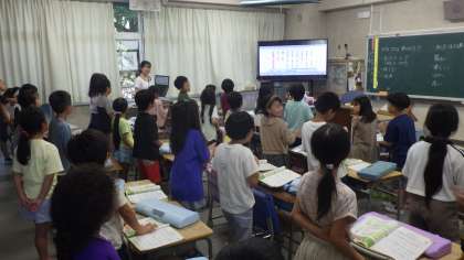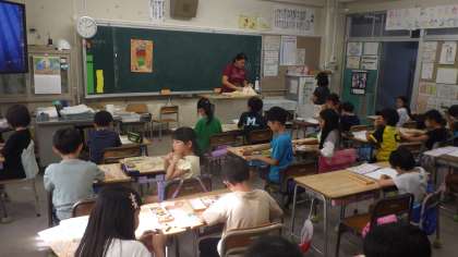 10月2日 3年生 公開日 2024/10/02 更新日 2024/10/02 お知らせ 図工の絵画活動、2年生は各学級によって題材がちがいます。この学級では、国語の物語文「わにのおじいさん」を題材にして、カラフルなわにを描いていました。 音楽では「かぼちゃ」という歌を元気いっぱいに歌いました。