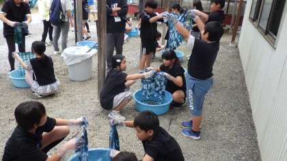 畳み方や輪ゴムの縛り方の違いで、思い思いのハンカチが完成しました。