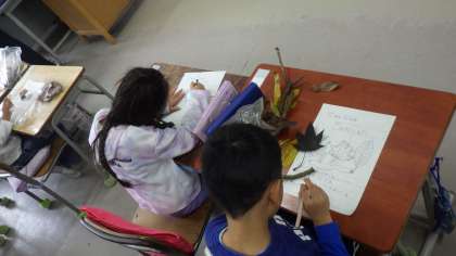 国語では漢字の学習を行い、「花」という漢字の部分部分についてくわしく確認をしました。生活科では、秋探しをしに手通公園に行きました。その後、拾ってきた「秋」を観察カードにまとめました。