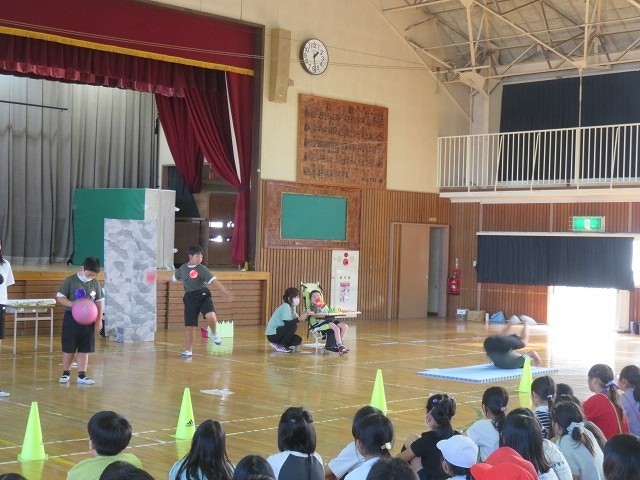 たくさんの観客がいるなか,恥ずかしさもあったことと思いますが,壁を乗り越え堂々と演技をしました。