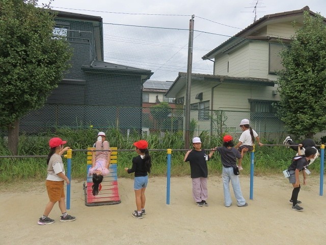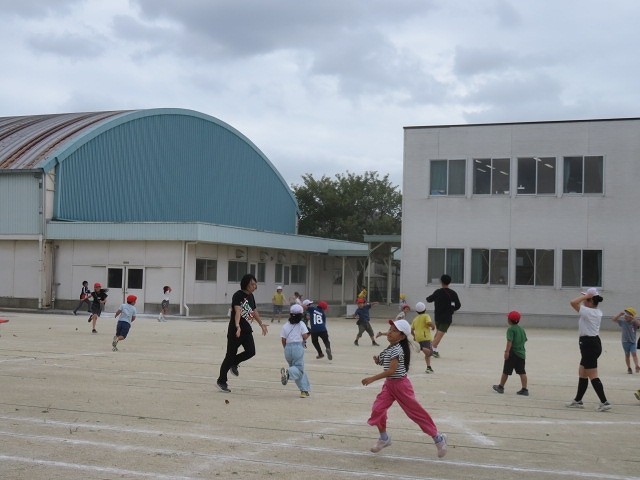 虫取りに夢中な子,鉄棒の技の上達を目指して頑張っている子,校庭をかけまわっている子などなど。