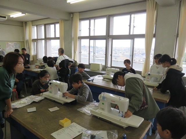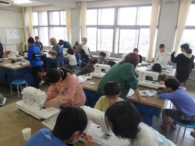 ボランティアさんにも来ていただき,ミシンの扱い方について確認していました。