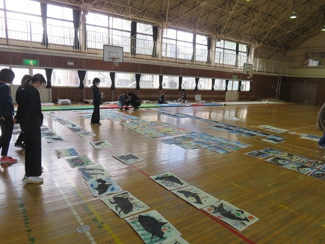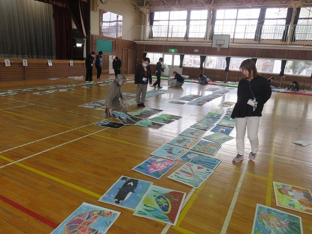 本校がこども県展の地区審査の会場になっており,市内のこども県展の作品が集まりました。