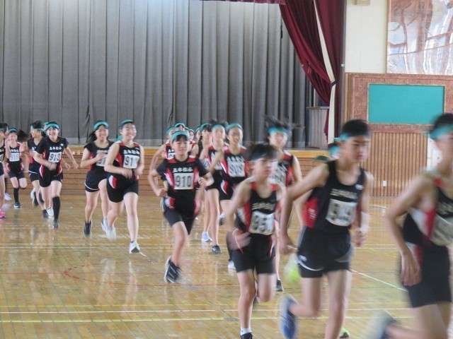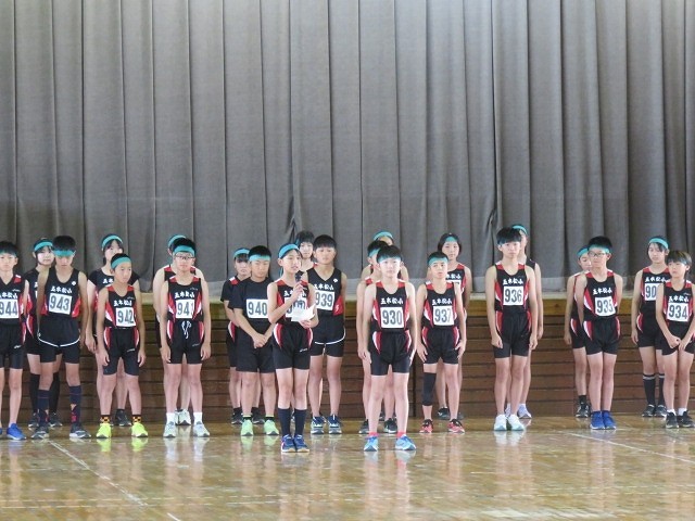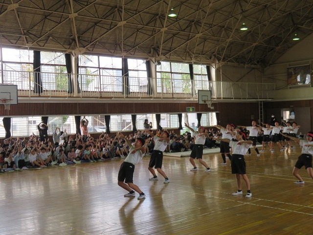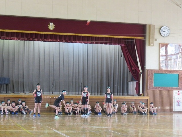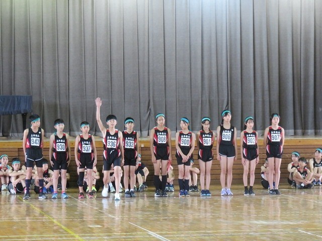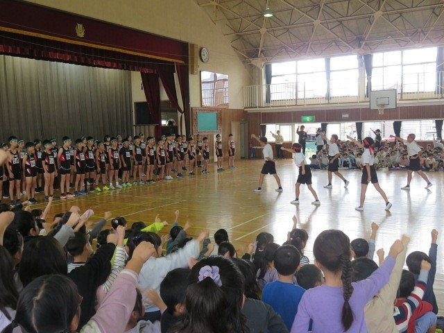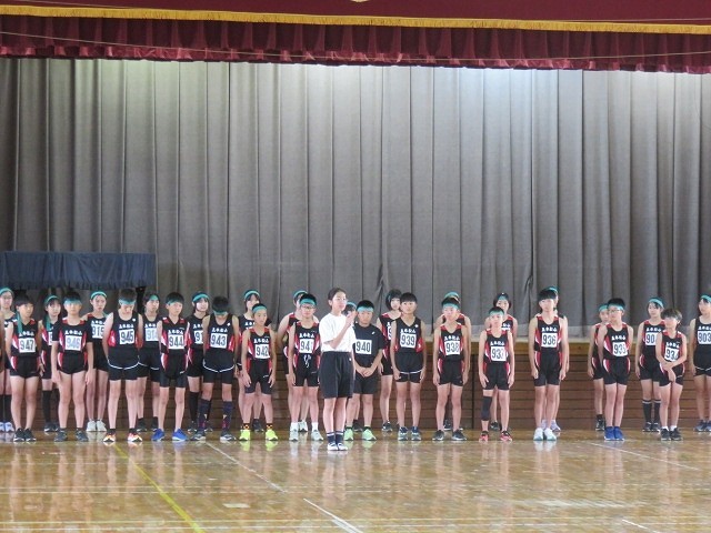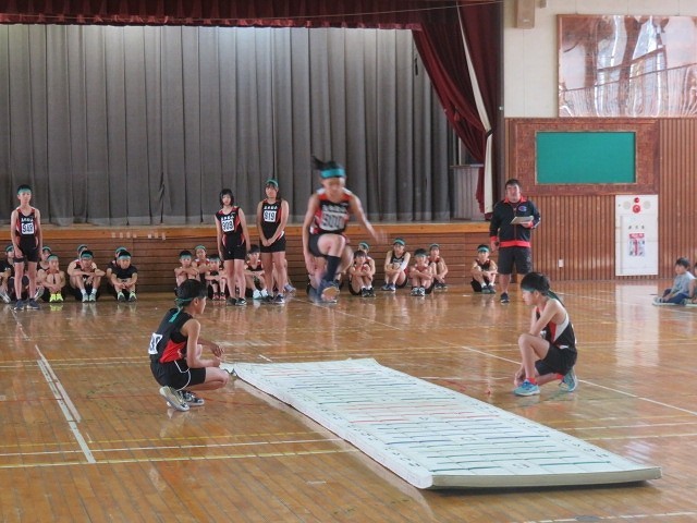 普段は校庭で練習しているので,いつもよりコンパクトな形の内容でしたが,選手団の記録のすごさが伝わる実技でした。