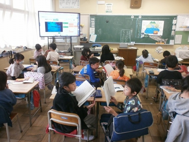 「さけが大きくなるまで」では,さけのすごいところをとなりの友達と伝え合っていました。