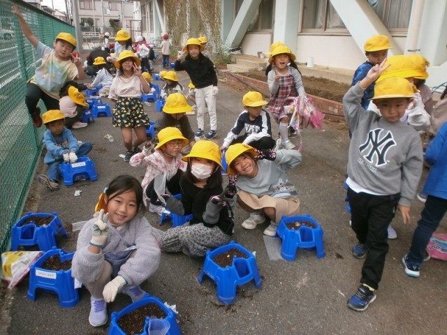 3つの球根がぶつからないように,位置を決めてていねいに土をかけていました。
