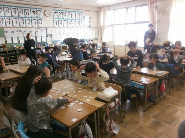 ビンゴゲームをしたり,かるたをやったりして,アルファベットの形や発音を覚えています。